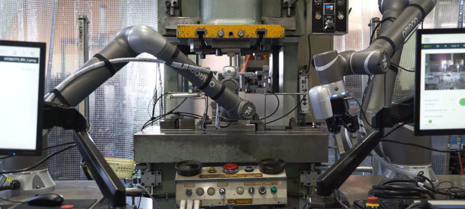 プレス工程に協働ロボットを導入、一人分の省人化を実現