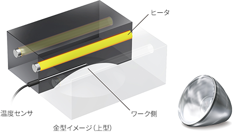 金型表面近くにセンサを設置できるため、金型表面温度を制御可能。
