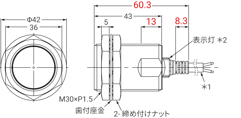 | コネクタタイプ | 形式情報:銘板貼り付け 表示灯穴:1個 ![]() |