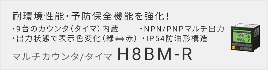 工作機械のツールメンテナンスカウンタ、多段設定のタイマ/カウンタ、9つの独立した(トータル)カウンタ/タイマ等として使える形H8BM-Rを用意