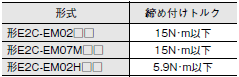 ・円柱ねじ切りタイプ(形E2C-EM□□)の締め付けトルクはは下表のとおりです。