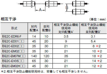・センサヘッドを対向または並列に配置する場合は、下表の距離以上離してご使用ください。