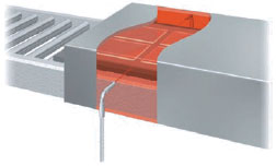・ 通過位置がばらつく落下検出や、蛇行検出、穴の影響を受けずに物体を検出するには、エリアビームが最適です。