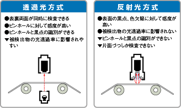 ●専用検出ボードは大型・高速プロセッサの採用により、多彩なデジタル検出アルゴ リズムを搭載。黒点・穴・淡・スジ・シワ・ストリーク等の様々な欠陥が検出できます。