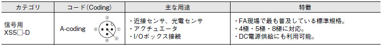 M12コネクタ コード別 用途・特徴一覧