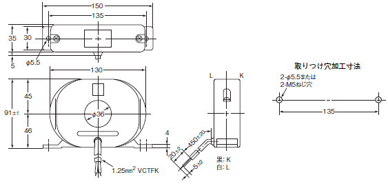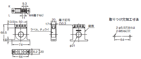 注. 端子部に端子記号の記載がある側がKです。