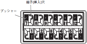 (2)プッシャーをマイナスドライバで押し込んだ状態で、端子(挿入)穴に電線を挿入してください。