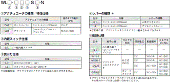 | アクチュエータの種類 | レバーの種類 | 表示灯 | 動作までの