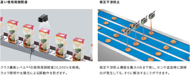 高い使用周囲照度と相互干渉防止機能で誤動作発生頻度を削減します。