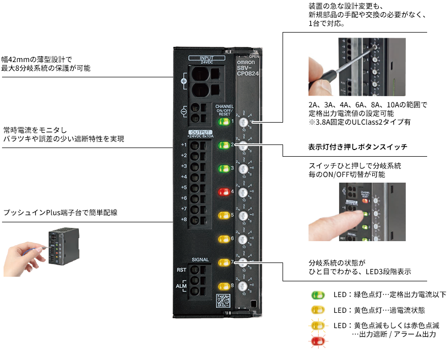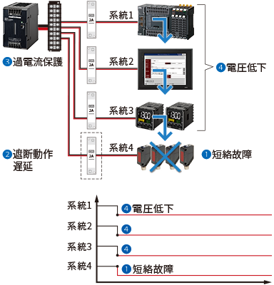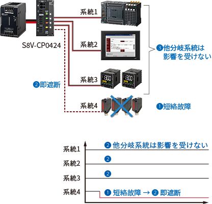 DC24V機器の短絡・過電流時の確実な保護を実現します。