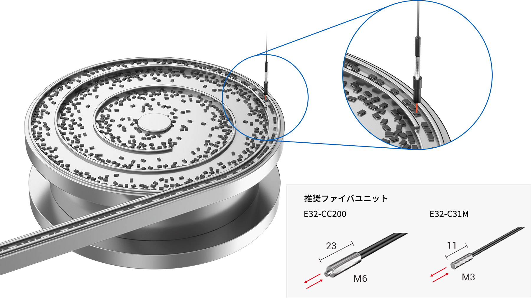 E3X-HD同等の検出性能を確保しています。最小検出物体は3μmなので、小さなパーツや裏表の判断材料となる電子部品の金属部サイズに対して、十分な余裕度があります。