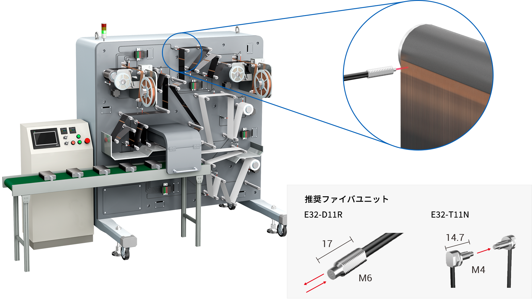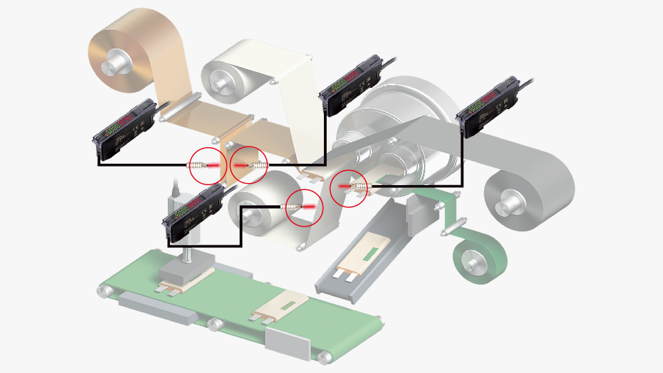 ファイバセンサはパーツフィーダや二次電池のシート巻取機、デジタル製品の組立機などで、ある・なし検出用途として大量に使われていますが、過剰な機能や性能を搭載したファイバセンサをご使用になられているお客様も多く、その分、コスト高になっている場合があります。
