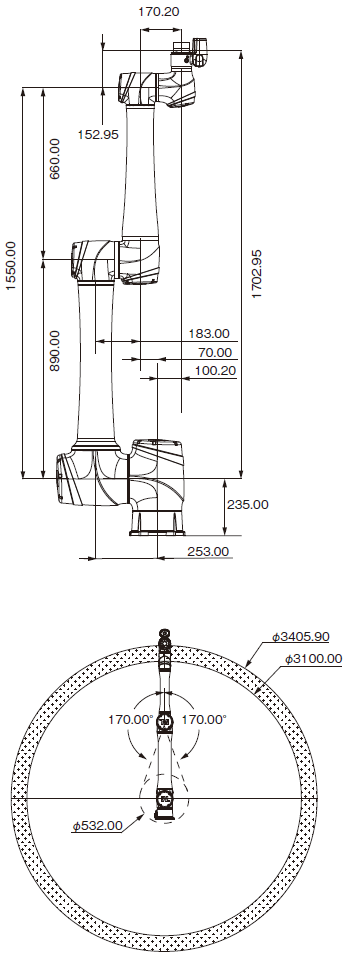 *カメラを含めない寸法です。詳細は、「ツールフランジ」の寸法を参照してください。