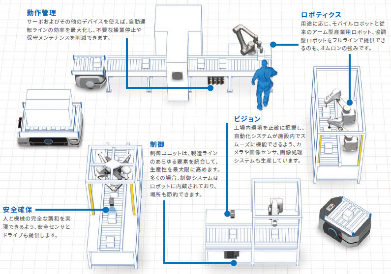 オムロンはロボットだけではなく、広範囲の自動化技術を一括提供しています。