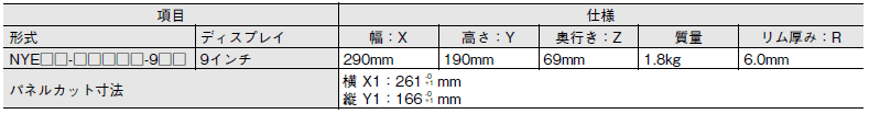 以下に9インチディスプレイパネルPCの寸法と質量に関する仕様の詳細を示します。