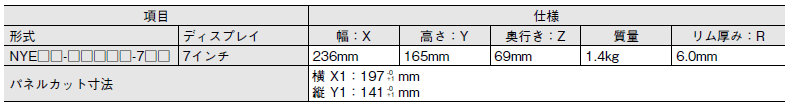 以下に7インチディスプレイパネルPCの寸法と質量に関する仕様の詳細を示します。