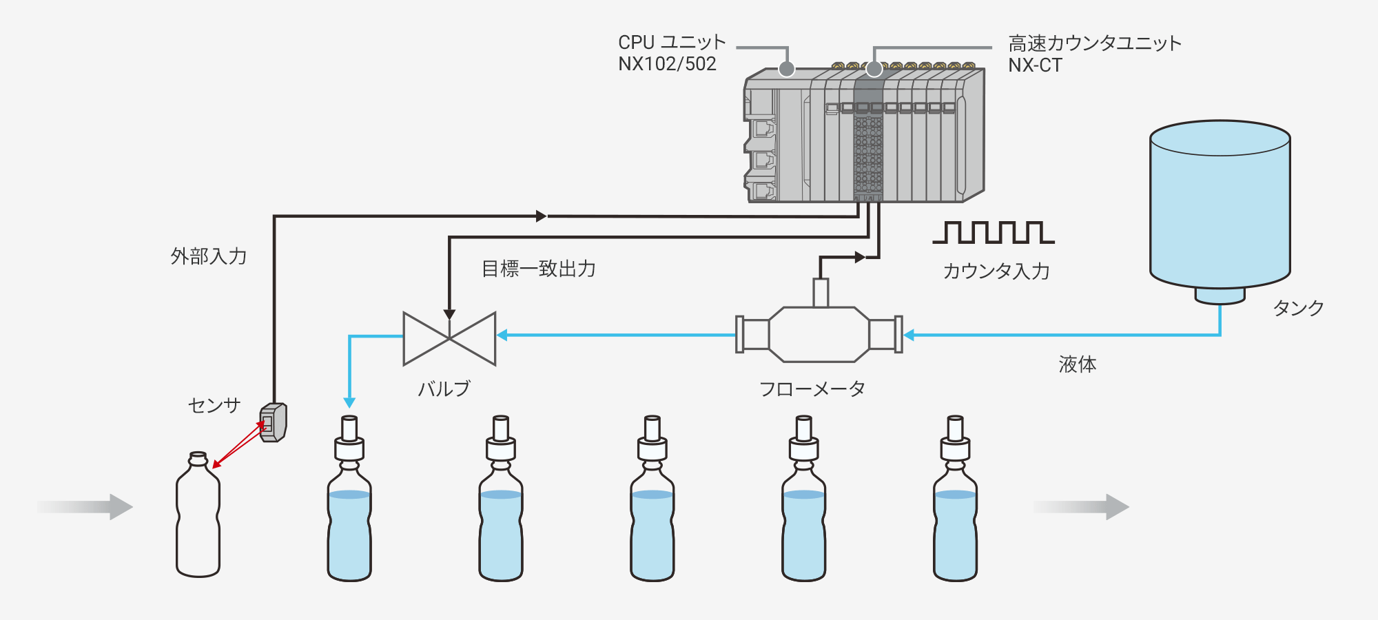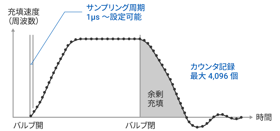 アプリケーション1:充填量制御遅延・変動に合わせて補正、充填量のムダを削減