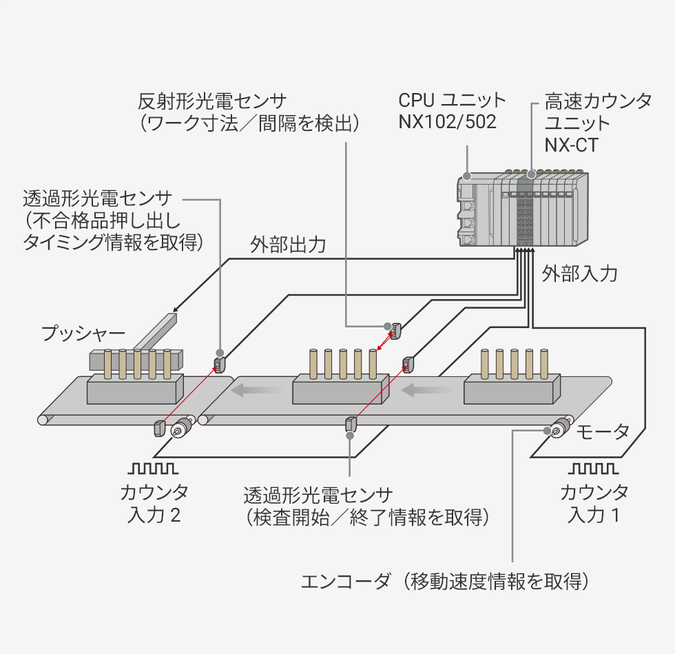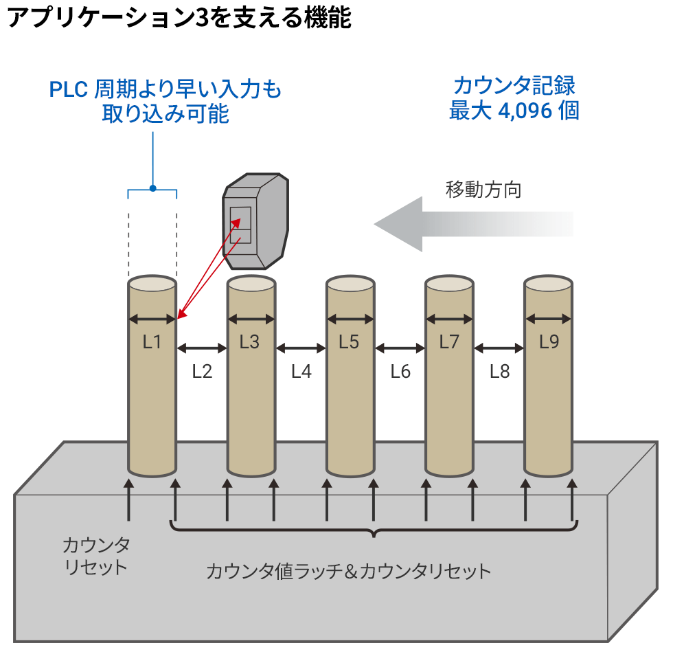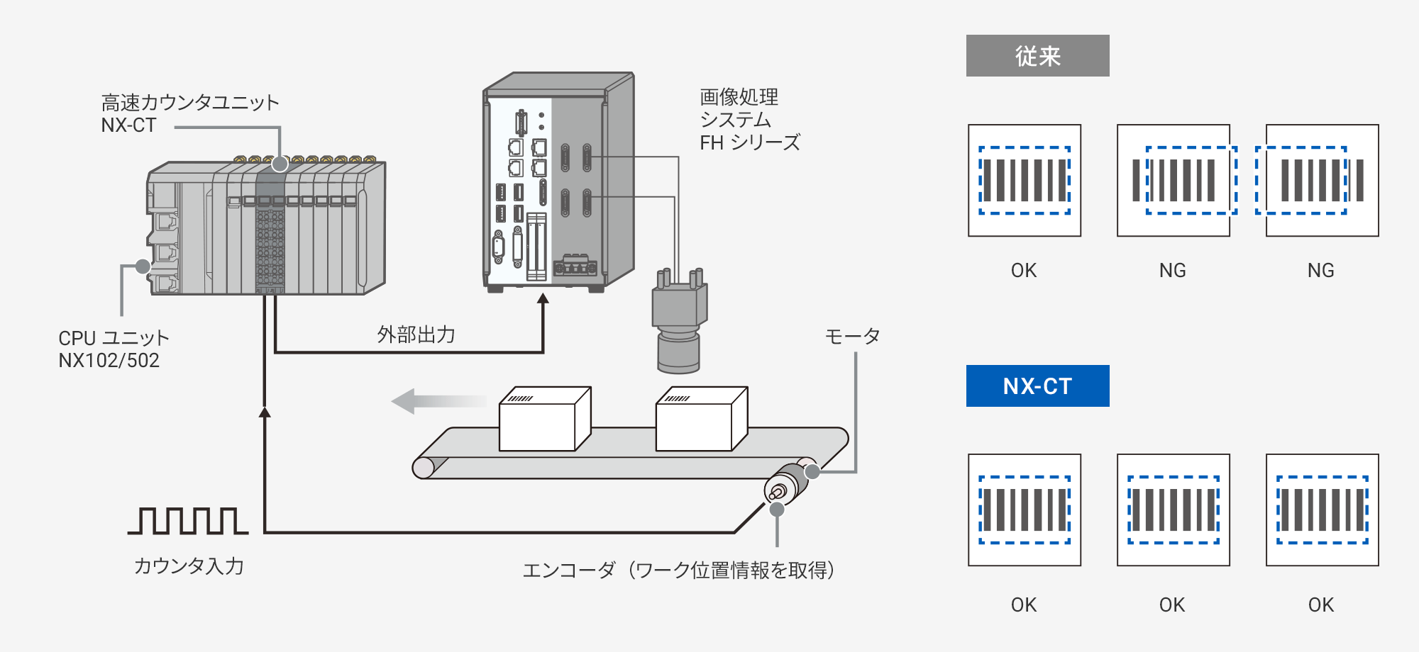 NX-CTはPLC周期よりも速い外部入力を逃さずに、最大4,096個のカウント値を記録するラッチログにより、良否判別や改善に活用するデータを漏れなく取得可能です。