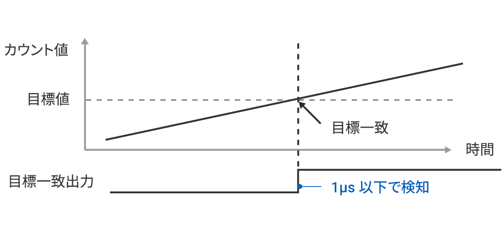NX-CTは1μs以下で検知可能なカウンタ比較機能を搭載。ユニット内で即座に処理する"脊髄反射的なエッジ制御"で、高速・高精度制御を実現。