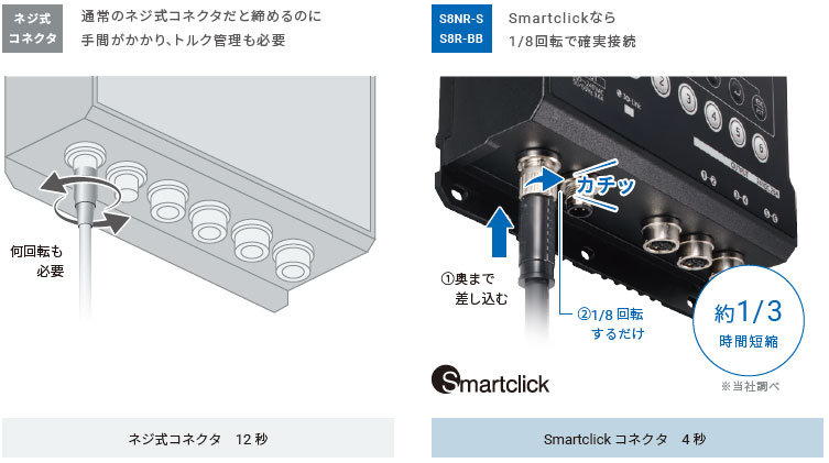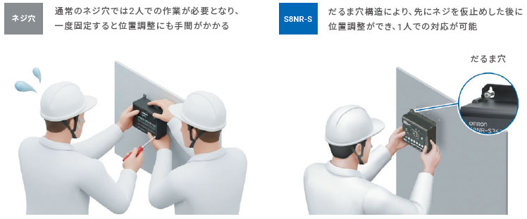 直感的な取り付け・配線により設置工数を削減でき、現場作業者の負担軽減とレイアウト自由度の向上を実現します。
