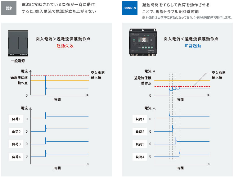 電線の線径に合わせた適切な遮断電流の設定が可能で細い電線を使用できます。また起動シーケンスも細かく設定でき、現場トラブルを回避できます。