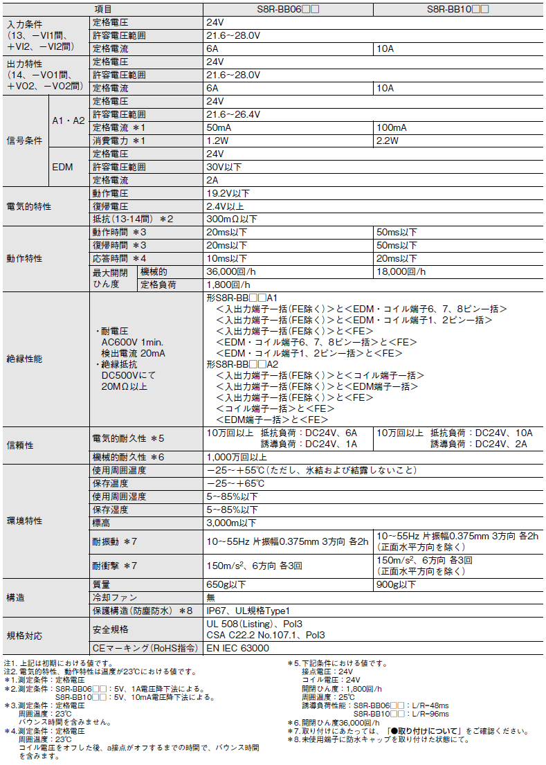 | 出力保持時間 *5 | 20ms Typ.(定格入出力にて)*1 | |||