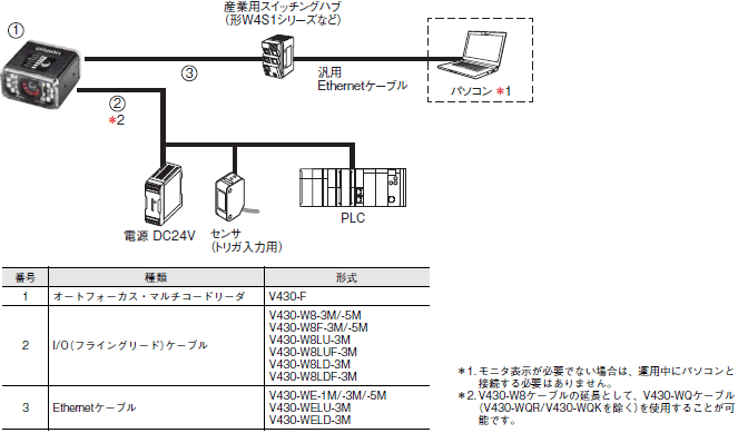Ethernetによりコマンドの入力、読取り結果の出力を行います。