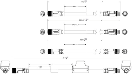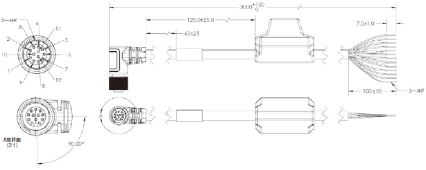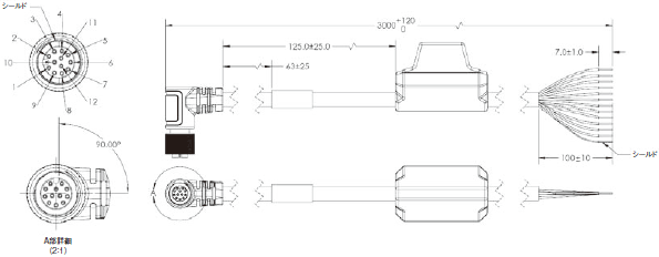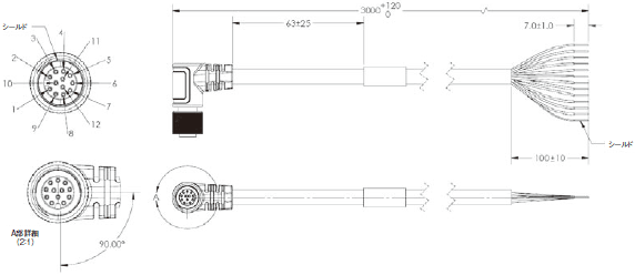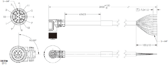 キーボードウェッジ- I/O(M12) 2股ケーブル