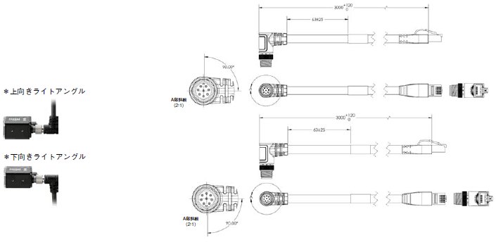 上向きライトアングルコネクタ(3m)