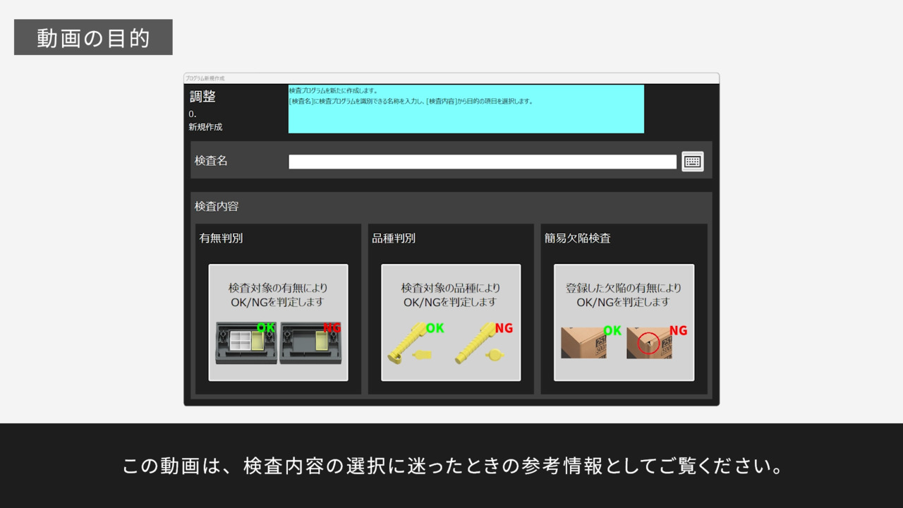 有無判別・品種判別の検査を行うための設定手順を説明します。