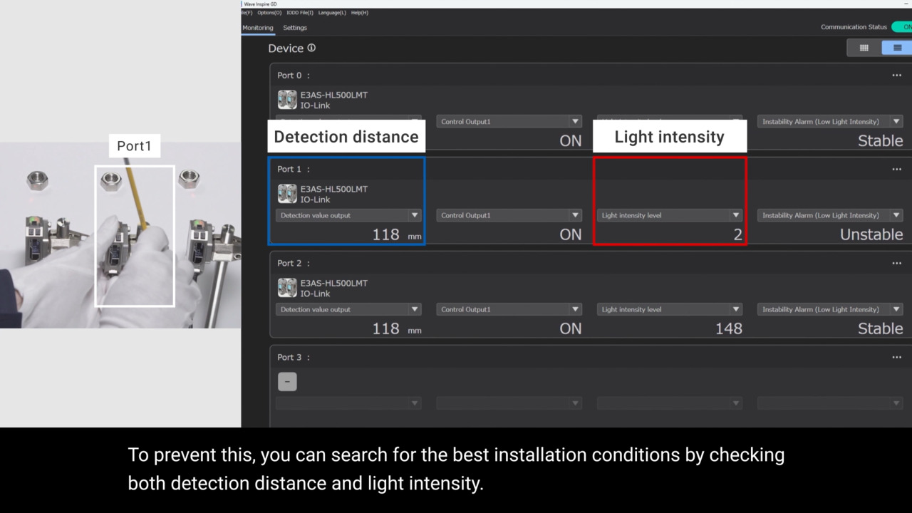 【GDシリーズ】センシングデータの見える化で、ベストな設置条件を把握する手順を説明します。(E3AS-HLシリーズIO-Linkモデル)