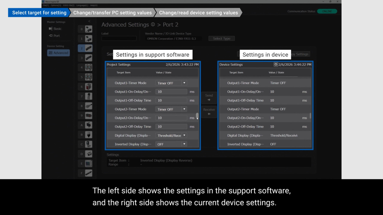 [GD series]This video explains the procedure for easily configuring the fiber amplifier using the support software.(E3NX-FA Series IO-Link Type)