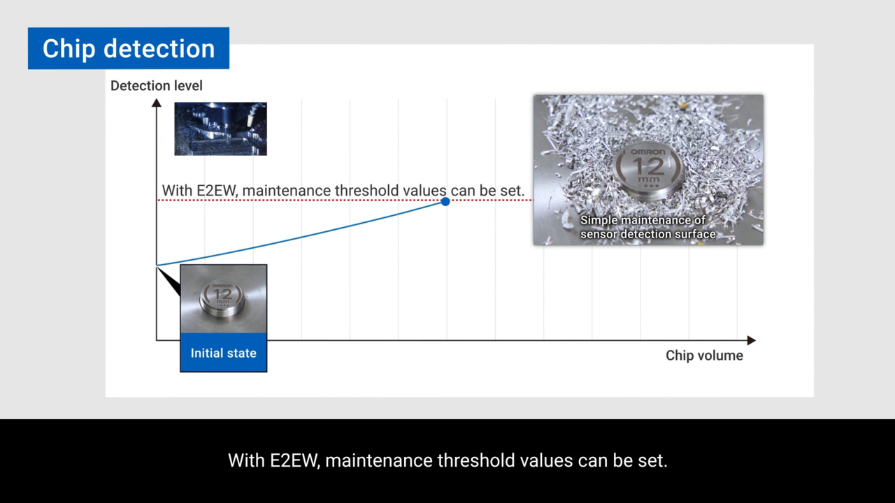 [GD series]This video explains how to monitor early signs of false detection caused by metal chips using the proximity sensor E2EW.(E2EW Series)