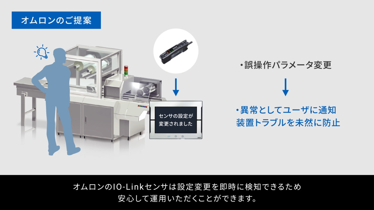 オムロンのIO-Link 光電センサ/近接センサならセンサの異常箇所と現象をリアルタイムにお知らせします。センサの配線ケーブルの断線やエラーを検知し、早急なメ...